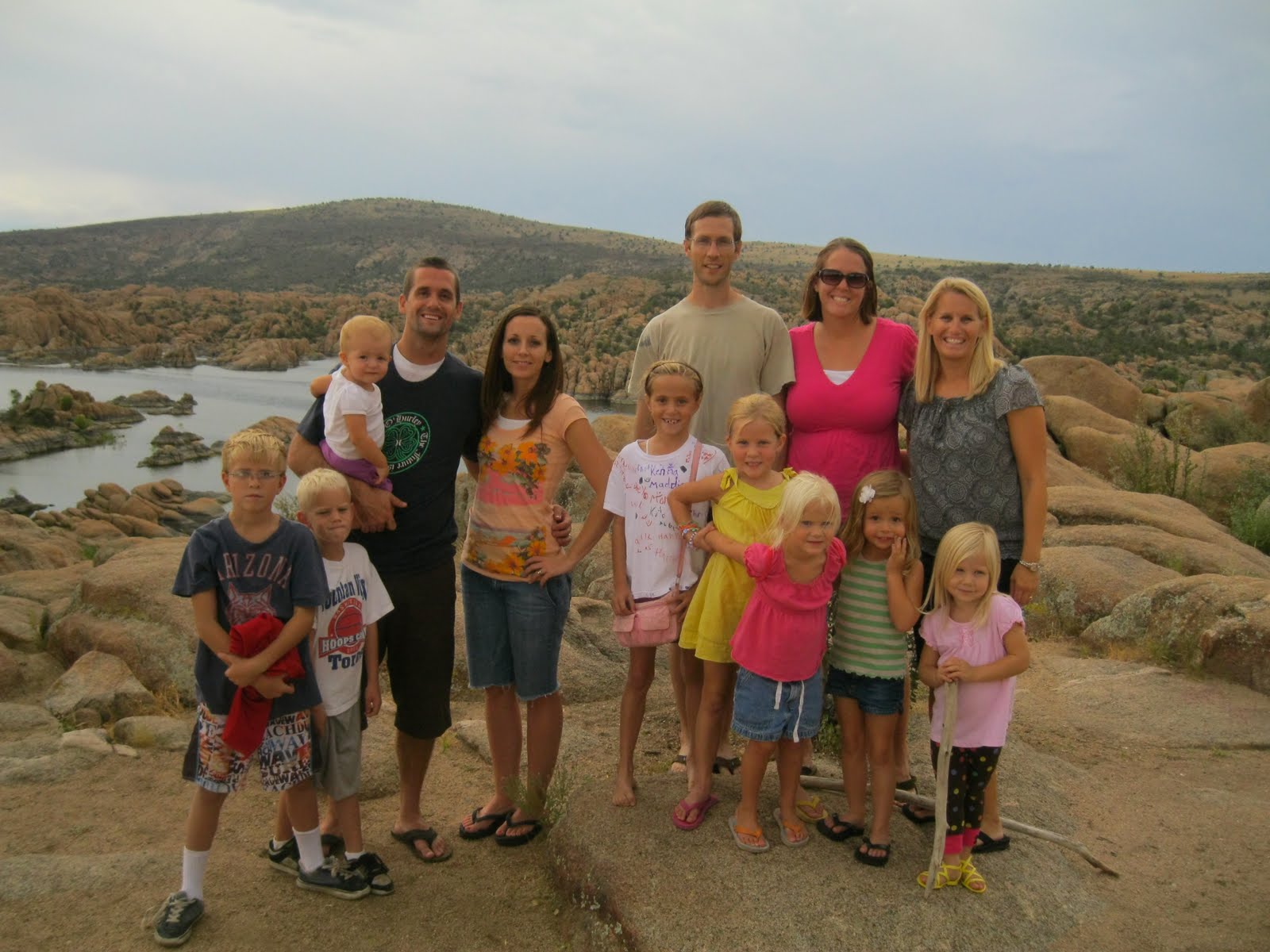 We headed up to Prescott Valley this past weekend to see Karrie's new place. My parents were heading up and wanted to bring Jack and Jay but Jack was in Utah with Ryan so it was just going to be Jay. Then I thought why can't I go, why does Jay get to have all of the fun. So I headed up and talked Joe and Cassie into coming since I had enough room in my car. We had a great time seeing Karrie's new house. It is beautiful. I love the floor plan and the basement. It was so fun to see Jeremy, Jacob, Abby, Hannah, and Annie. They are such a fun family. After lunch of Panda Express, my parents left after staying about 2 1/2 hours, almost a record. The rest of us headed out for an adventure. We went to Watson Lake, and hiked around. It was beautiful except the millions of ants that swarmed all over my feet if I stood still for too long. We had a great time and look forward to many more trips up to Prescott Valley. In fact Kate is already asking when we can go back and saying she misses Annis in Prescott.